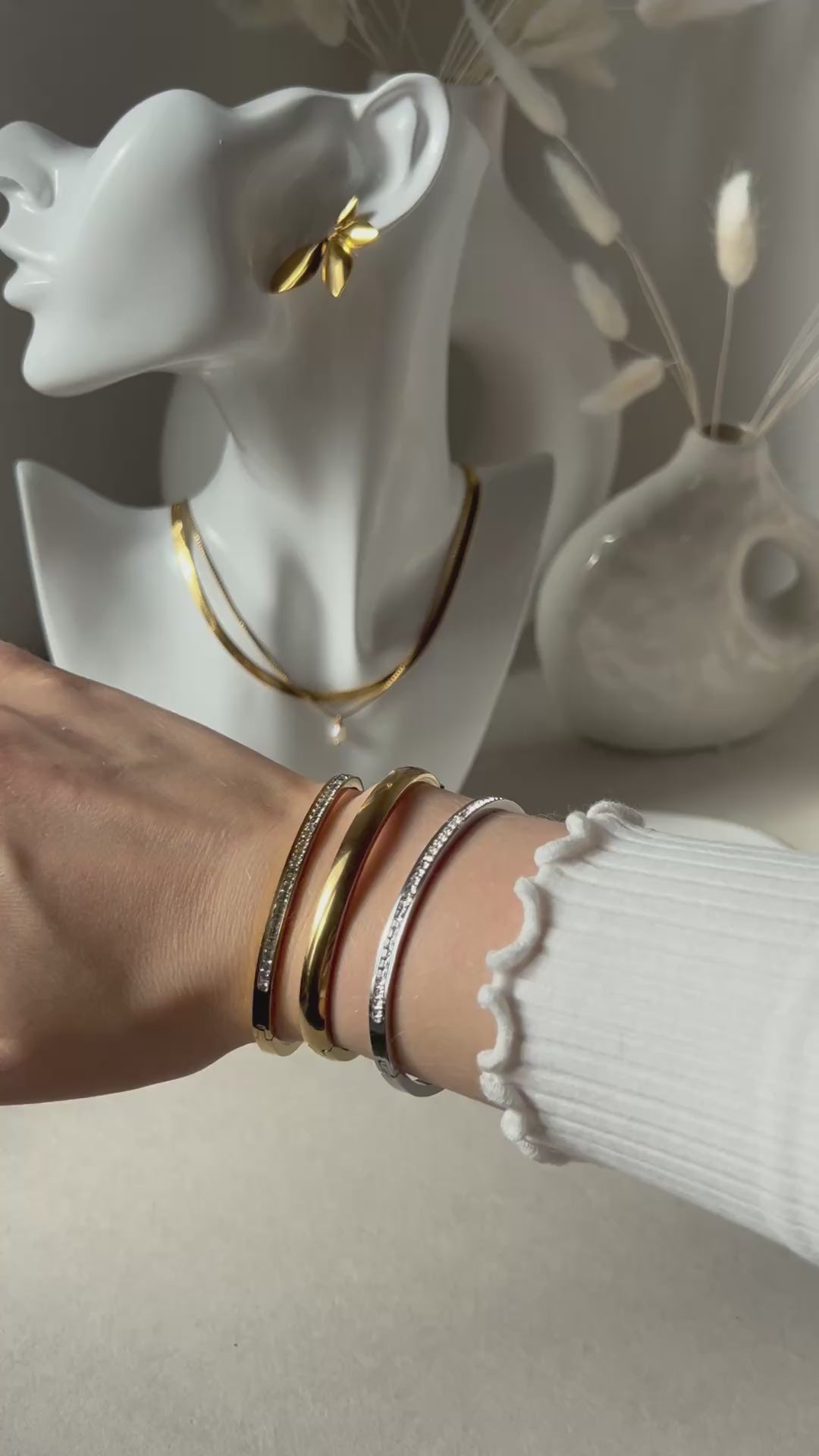 Der Lunara Armreif vereint minimalistisches Design mit dezentem Glanz – gefertigt aus hochwertigem Edelstahl und veredelt mit einer feinen Reihe funkelnder Zirkonia.